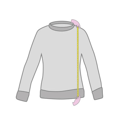 Mide la distancia entre la costura del hombro, donde se une al cuello, y la cintura natural, tal y como se muestra en la imagen.