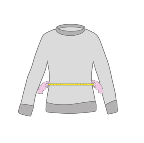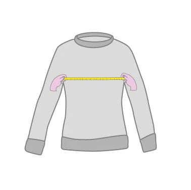 Mide el ancho del pecho, entre las costuras laterales de la prenda, tal y como se muestra en la imagen.