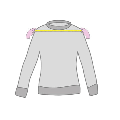 Mide la distancia entre las costuras de los hombros, tal y como se muestra en la imagen.